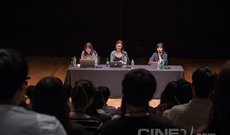 ‘웰컴 투 씨네리’ 첫날 마지막 행사로 <씨네21> 김혜리 기자와 SBS 최다은 PD, 배우 임수정이 참석한 가운데 팟캐스트 ‘김혜리의 필름클럽’ 공개 녹음이 진행됐다. 영화 부문 인기 팟캐스트답게 많은 ‘클럽원’들이 자리를 채웠다. 앤드리아 아놀드 감독의 <아메리칸 허니: 방황하는 별의 노래>가 이날 함께 이야기 나눈 영화. 영국