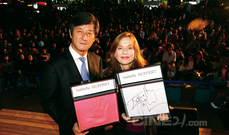 전설적인 프랑스 영화의 대모가 영원한 손자국을 부산에 남겼다. 프랑스 여배우 이자벨 위페르가 8일 토요일 오후 7시 해운대 피프 빌리지 야외무대에서 핸드프린팅을 했다. 1971년 <포스틴과 여름>으로 데뷔한 이자벨 위페르는 클로드 샤브롤, 장-뤽 고다르, 모리스 피알라 등 프랑스 감독들은 물론 마이클 치미노, 미카엘 하네케 등 수많은 거장들과
