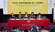 드디어 출정식을 가졌다. 제10회 전주국제영화제 공식기자회견이 4월30일 오후3시 고사동 전주 영화 제작소에서 열린 것. 이날 기자회견에서는 민병록 영화제집행위원장을 비롯해 곽용수 인디스토리대표, 이응출 KT&G상상마당 팀장, 개막작 <숏!숏!숏! 2009:황금시대>의 ‘반장’ 김성호 감독, 정수완 수석프로그래머가 참석했다. 영화제는 앞