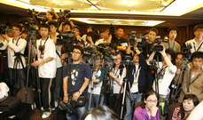 발 디딜 틈이 없었다. 어제 오후 4시, <M>의 기자회견이 열린 파라다이스 호텔 시드니룸은 취재 장비를 하늘 높이 들어올린 기자들로 가득 찼다. 노트북과 수첩을 들고 바닥에 주저앉는 이도 많았다. 회견장에 들어선 기자는 약 100여 명. 기자를 위해 준비된 테이블은 단 네 개였다. 영화에 대한 높은 관심에도 불구하고 간담회 장소는 턱없이 좁았