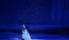 영화 <국보>에 나오는 첫 가부키 <세키노토>(국경의 관문). <세키노토>는 눈 덮인 오사카 산의 관문과 기묘하게 만개한 한 그루 벚나무를 배경으로 한 도키와즈(常磐津) 무용극이다. 무대를 벗어난 두 배우가 복도에서 연기를 이어갈 때 절묘하게도 그 후경엔 눈이 내리고 있다. 마치 가상의 이야기 속 무대가 현실에 확장 구현
