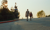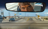 붉은 모자를 쓴 트래비스가 사막에서 걸어 나온다.