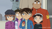 담임 코바야시 선생님과 부담임 와카사 선생님의 인솔 하에 동행한 코난과 어린이 탐정단.