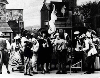 <범죄 현장으로의 귀환>은 1969년 제이콥스가 만든 <톰, 톰, 배관공의 아들>을 디지털 기술을 이용해 새롭게 구성한 작품이다. 화면을 꽉 채우는 세트 디자인은 윌리엄 호가스의 동판화 <Southwark Fair>(1733)에서 영감을 얻었고, “톰이 돼지를 훔쳐 달아난” 이야기는 마더구스 전래동요에서 빌려왔다. 돼