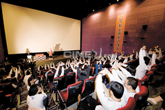 5초간 눈을 감아도, 자리에서 일어나도 쉬는 시간을 어겨도 탈락. 한국기록원이 참관해 공식기록을 인정해주는 영화오래보기대회가 2월24일 정오부터 27일 새벽 2시까지 3박4일에 걸쳐 서울 CGV왕십리에서 열렸다. 40여명의 감시요원들이 30여대의 카메라로 빈틈없이 감시하는 가운데, 첫 영화 <좋은 놈, 나쁜 놈, 이상한 놈>에서 300명 중 2명이 탈락했다. 2월26일 저녁 10시 현재 12명이 마지막으로 남아 관람의 투혼을 불태우고 있다. 사진은 대회 시작 전 도전자들이 각오를 다지며 기지개를 펴는 모습.