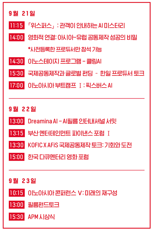 9월20일 2025 아시아콘텐츠&필름마켓(이하 ACFM)이 시작됐다. 23일까지의 여정을 이어갈 ACFM은 경쟁부문을 신설한 부산국제영화제처럼 상당한 변화와 확장의 20주년을 맞이했다. 1998년 시작된 아시아프로젝트마켓(APM)이 이어진다. 그간 721편의 프로젝트를 소개하고 319편 이상의 영화를 완성한 이번 APM엔 15개국에서 선정된 30편의 작품에 11개 부문의 상을 안길 예정이다. 아시아 영화산업의 리더십 플랫폼인 ‘The A’, 영상산업과 긴밀한 관계를 구축 중인 세계의 빅테크·AI 기업을 초청해 혁신 기술을 나누는 ‘이노아시아’ 등이 신설됐다. 또한 지난해 출범한 프로듀서허브와 독스퀘어, 플랫폼부산, 아시아영화펀드 등은 그 필요성이 나날이 커지는 아시아의 국제공동제작 의제를 주도한다. ACFM이 문을 연 첫날, The A와 이노아시아의 첫 프로그램을 찾아 현장의 분위기를 채록했고 김영덕 ACFM 위원장과의 인터뷰로 ACFM의 현재와 미래를 논의했다.