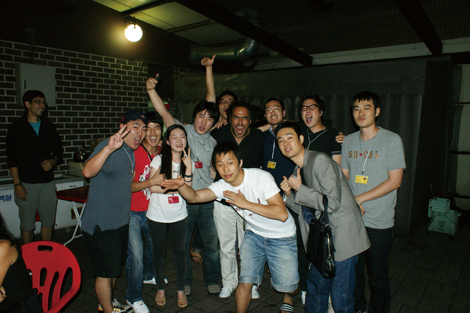 “알레한드로 곤살레스 이냐리투 감독이 패션 브랜드 초청 행사로 한국에 왔는데 마침 개막식이 열리던 날과 일정이 겹쳤다. 이냐리투 감독측에서 한국 감독들을 만나고 싶다고 연락이 왔기에 한국영화계의 중요한 행사가 있어서 못 간다고 했다. (웃음) 그랬더니 본인이 우리쪽으로 오고 싶다기에 남영동 호프집으로 안내했다. 우리 영화제 취지도 소개하고 연락처도 주고받고 DVD도 만들어서 보내주곤 했다. 한국영화계는 이렇게 젊은 감독들이 모여서 단편영화도 만드는 걸 보니 미래가 밝다고 덕담도 주고받고 했던 그날 현장의 기록이다.”