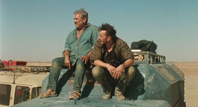 영화 <시라트>또한 생존이 긴급한 세계를 그린다. 레이브 파티가 한창인 모로코 사막 너머에선 3차 세계대전이 발발했다. 무장한 군대는 파티를 강제로 해산시킨 뒤 EU 시민에 한해 대피를 돕는다. 군인들을 따돌려 또 다른 레이브 파티로 향하는 레이버 무리에 일렉트로닉 뮤직과는 거리가 멀어 보이는 루이스(세르히 로페스)와 그의 어린 아들 에스테반(브루노 누녜스 아르호나), 강아지 피파가 합류한다. 전쟁이 한창인 바깥세상에서 생존하려면 군인들의 명령대로 대피가 필수다. 이때 통신조차 터지지 않는 깊고 넓은 사막에 잔류해 파티를 즐기는 레이버들의 결정은 자멸에 가깝다. 하지만 이들 역시 죽음 대신 삶에 투항한, 생존을 최우선 가치에 둔 자들이다. 이들의 여정은 피난을 피한 또 다른 피난일 뿐이다. 루이스가 이 무리에 합류한 이유는 실종된 딸을 찾기 위해서다. 레이브 파티에 갔다 돌아오지 않은 딸의 생존 여부를 확인하기 위해선 종전(終戰)만큼 기약이 없는 레이버들의 순례에 동참할 수밖에 없다. 레이버들은 이미 관습이나 규범과 거리가 먼 자기만의 생존 양식을 체화한 이들이다. 통념에 항거해온 삶의 흔적이 신체와 정신에 전리품처럼 남아 있는 자들. 이들은 붕괴 직전의 세상에서도 살아 있음을 확인하고자 테크노음악에 스스로를 투신한다.