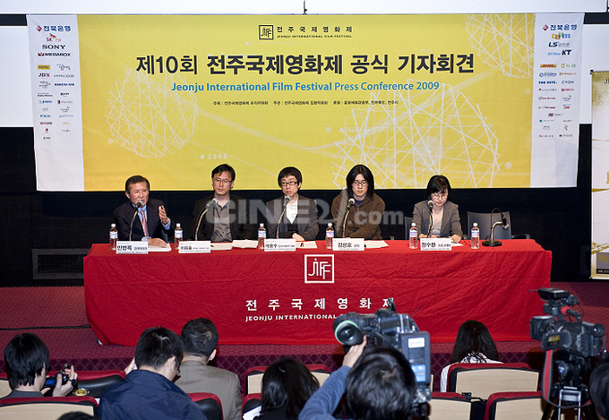 드디어 출정식을 가졌다. 제10회 전주국제영화제 공식기자회견이 4월30일 오후3시 고사동 전주 영화 제작소에서 열린 것. 이날 기자회견에서는 민병록 영화제집행위원장을 비롯해 곽용수 인디스토리대표, 이응출 KT&G상상마당 팀장, 개막작 <숏!숏!숏! 2009:황금시대>의 ‘반장’ 김성호 감독, 정수완 수석프로그래머가 참석했다. 영화제는 앞으로 5월8일까지 총9일간의 대장정에 돌입할 예정이다.