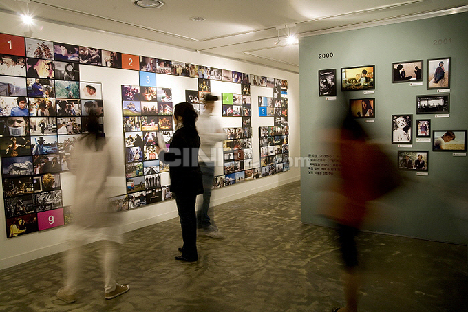 짧은 러닝타임으로 극장에서 일찍 나와 다음 상영시간까지 어떻게 보내야할지 고민하는 관객들에게 건네는 한 가지 팁. 프리머스 극장 옆에 위치한 전주영화제작소 건물 1층에서 열리는 10주년 기념전을 보러 가라. ‘JIFF를 추억하다’라는 부제가 달린 이 기념전은 10주년을 맞은 전주국제영화제가 지난 세월을 되돌아보기 위해 기획한 것. 그래서인지 전시장에 들어서자마자 2001년부터 2008년까지 연도순으로 266점의 행사사진들과 277점의 스틸컷들이 순간 압도한다.