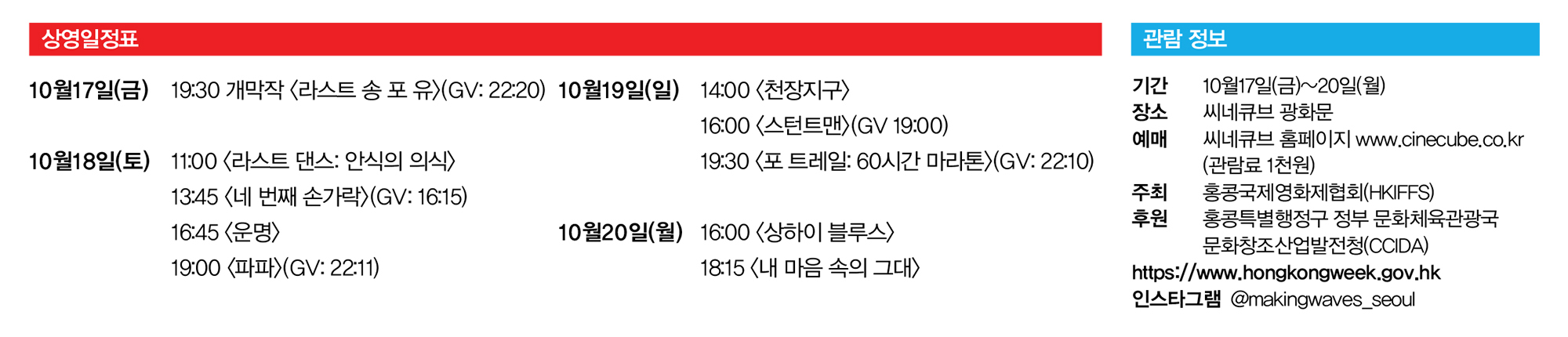 상영일정표 및 관람 정보