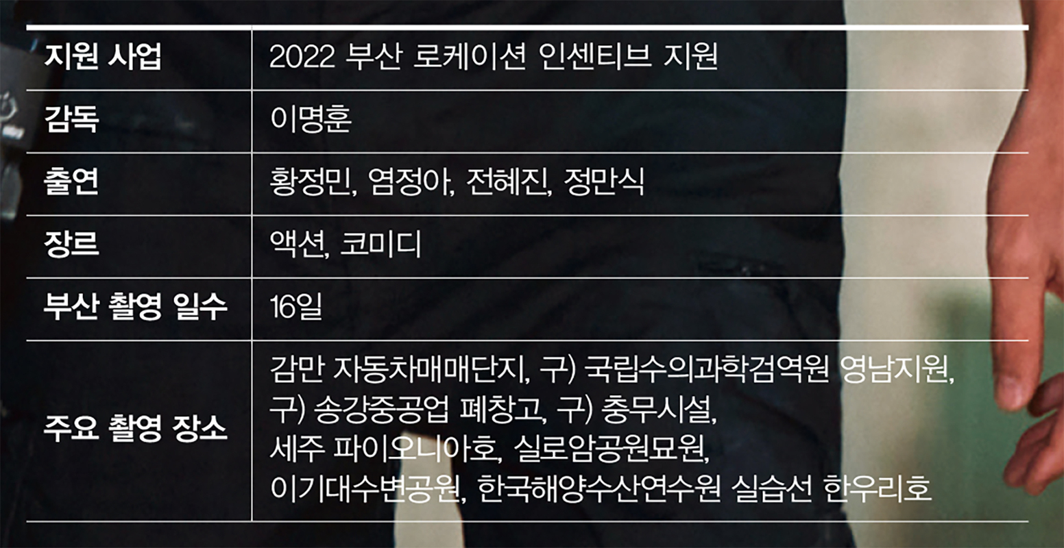 개미 한 마리도 죽이지 못할 것 같던 살림꾼 남편이 알고 보니 전직 정보사령부 특수요원이었다니. 이명훈 감독의 <크로스>는 정체를 숨기고 살아가던 전직 요원 남편 강무(황정민)와 현직 강력계 에이스 형사 아내 미선(염정아)이 힘을 합쳐 거대한 방산 비리를 추적하는 코믹 액션물이다. 평화로운 일상을 바라며 오랫동안 숨겨온 남편의 비밀 탓에 두 사람 사이에 겹겹이 쌓인 오해는 곧장 거대한 범죄의 소용돌이로 이어지게 된다. <크로스>의 핵심은 일상과 첩보 공간 사이의 극명한 대비다. 여느 부부의 하루와 다를 바 없는 평범한 풍경 뒤로 고문과 총격 그리고 음모로 휩싸인 낯설고 어두운 공간을 구현할 장소가 곧 급박한 액션의 쾌감을 결정했다. 바다와 산을 고루 갖춰 두 가지 매력을 겸비한 부산이야말로 반전 매력을 드러내기에 최적의 선택지였다. 미선의 마약 범죄 검거 현장, 강무의 특수요원 시절 작전 수행 공간, 역대급 군납 비리를 계획했던 희주(전혜진) 일당의 본거지까지. <크로스>속 짙은 범죄의 그림자가 드리운 현장은 모두 부산의 공간 아래서 새롭게 탄생했다. 당시 <크로스>촬영을 위해 프로덕션 초기부터 긴밀하게 소통했던 김아현 당시 부산영상위원회 촬영지원팀 담당자와 유춘수 사나이픽쳐스 제작실장, 직접 현장에서 이미지를 꾸려갔던 박정훈 촬영감독과 이나겸 미술감독의 이야기를 토대로 <크로스>가 부산에서 담아낸 제작기를 전한다.