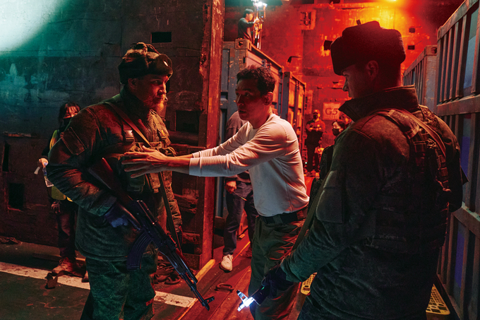 블라디보스토크는 냉기와 혹한의 도시다. <크로스>의 제작진은 화면에 담길 기후에서도 도시의 한기가 느껴지길 원했다. 이나겸 미술감독은 “북방 특유의 기후를 표현하기 위해 두꺼운 겨울 군복을 입히고, 습기와 스모그를 이용해 자연스러운 해무를 연출했다. 일반적인 항구의 톤과 달리 무채색 계열을 사용해 차갑고 다소 황량한 타국의 항구를 그려내려 했다”고 전했다. 시각적으로 부산을 러시아로 인식하게 하기 위해 러시아 항만의 사진 자료를 다수 참고했다. “러시아어 간판과 현지에서 사용하던 안내판은 물론, 선박 내부 구조와 갑판 위의 물건마저 러시아 선박처럼 그려내려 했다.” 미로처럼 얽힌 컨테이너와 선실 사이에 보이는 작은 디테일마저 놓치지 않았다.