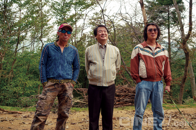 재필과 상구는 험상궂은 겉모습과 사교적이지 않은 말투 탓에 처음 만난 이들에게 오해를 산다. 이 점은 <핸섬가이즈>초중반의 웃음 포인트를 만드는 동시에 사태를 악화시키는 플롯 트위스트의 표지로 활용된다. 두 배우는 위협적으로 보일 만한 캐릭터의 체구를 만드는 데 진심이었다. 다만 그 방식이 달랐다. 이희준 배우는 벌크업을 시도했고 이성민 배우는 현장에서 음식 섭취를 게을리하지 않았다. 공작새의 꼬리마냥 뒷머리를 뻗친 재필의 머리는 배우 이성민의 아이디어로부터 비롯됐다. 의상 컨셉 회의를 하기 전 이성민 배우가 재필이 이런 모습이면 어떻겠느냐며 어느 멧돼지 사냥꾼의 사진을 보낸 것이다. 최종 의상에 모두 반영된 것은 아니지만 이성민 배우의 아이디어는 재필의 외양을 만드는 데 중요한 단초가 되었다. 한편 상구의 티셔츠엔 강아지 한 마리가 그려져 있다. 상구가 직접 반려견 봉구를 티셔츠에 그려넣었다는 설정이다. 영화 속에 등장하는 소품들 또한 허투루 선택된 것은 없다. 재필과 상구가 소유한 트럭 또한 의도적으로 녹슬고 찌그러진 차량이 선택됐다. 둘의 거친 인상에 편견을 더할 만한 요소다.