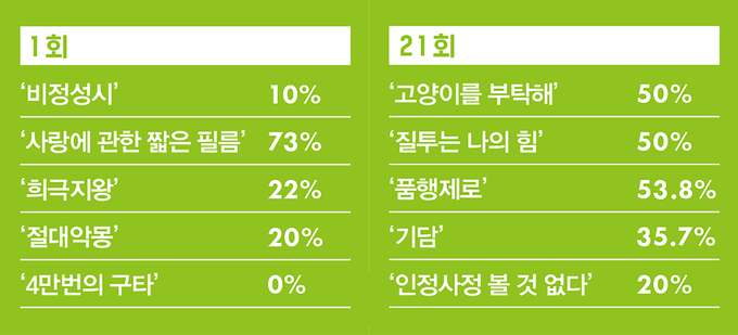 ‘고양이를 부탁해’, ‘질투는 나의 힘’은 윤가은, 이옥섭 감독이, ‘품행제로’는 한준희 감독이, ‘기담’은 엄태화 감독이 제안했고‘인정사정 볼 것 없다’는 집단지성으로 정해졌다.