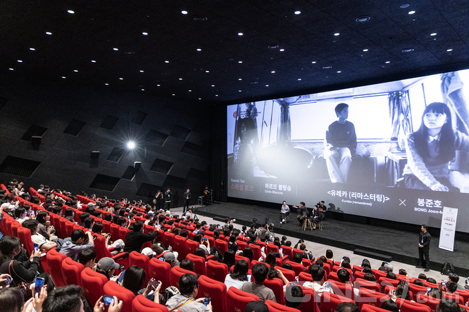 스페셜 토크 프로그램 ‘까르뜨 블랑슈’의 마지막은 한국을 대표하는 거장 봉준호 감독이 책임졌다. 그가 고른 상영작은 2022년 타계한 일본의 거장, 아오야마 신지 감독의 <유레카>(2000)였다. 그간 봉준호 감독은 일본 감독 중에서 구로사와 기요시, 사카모토 준지, 하마구치 류스케 등을 꾸준히 언급했었으나 아오야마 신지와 그의 작품을 직접적으로 이야기한 적은 드물었다. 봉준호 감독은 “2000년에 로테르담 국제영화제에서 <플란다스의 개>를 상영한 당일 혹은 다음 날, 영화제에 함께 초청된 <유레카>를 봤던 기억이 생생하다.”라며 “다른 일본 감독들과는 친하게 지낼 기회가 많았지만, 왠지 아오야마 신지 감독님을 실제로 뵌 적은 없었다. 이렇게 영화로나마 인사를 드리는 기분”이라고 선정의 변을 밝혔다. 이어 “사실 이렇게 압도적인 감정을 주는 영화를 보고 나면 조용히 극장을 나서서 술이나 마시는 게 가장 좋겠지만··· 함께 본 영화에 관해 이야기 나누는 일도 영화제의 기쁨이죠”라는 봉준호 특유의 유머를 시작으로 <유레카>에 대한 본격적인 대화가 시작됐다.