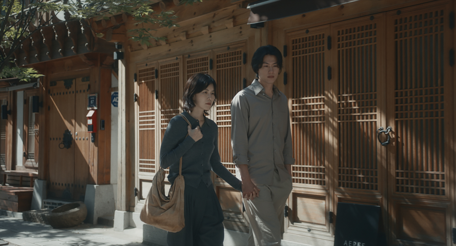 영화는 파편화된 기억의 조각들로 두개의 타임라인을 구성한다. 여기서 두 가지의 힘이 작용한다. 하나는 정호라는 미스터리한 인물을 만드는 과정에서 발생한다. 두명의 정호를 처음에는 하나의 인물처럼 그린다. 그렇게 영화는 두개의 독립된 세계를 잇는다. 인물들은 서로를 스쳐 지나간다. 이중인화를 한 듯이 서로가 서로의 배경이 된다. 특히 유정이 카페에서 정호를 마주쳤을 때가 그렇다. 첫 번째 정호가 우리가 아는 정호의 전부였기에 해당 장면을 보면 왜 서로를 몰라보는지 의문을 가지게 된다. 유정이 정호의 글씨체는 알아보더라도 정호 자체를 못 알아보는 것에서 정호는 주변을 맴도는 유령처럼 비치기도 한다. 과묵한 첫 번째 정호는 우리에게 각인된 실체고, 두 번째 정호는 흔적으로 등장한다. 두명의 정호는 공집합을 만들면서 하나의 정호로 합쳐진다.