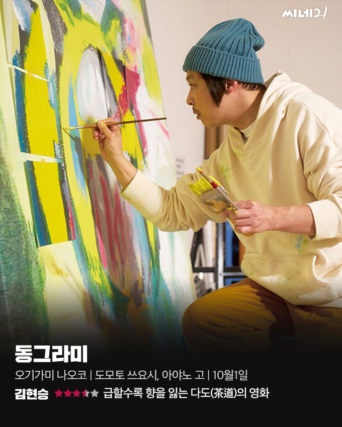 미술을 전공했지만 4년째 다른 작가의 보조 일을 하며 살아가는 사와다(도모토 쓰요시). 혹사에 가까운 노동과 낮은 임금 속에서도 ‘좋아하는 일을 하는 어른은 없다’는 체념으로 하루하루를 버틴다. 그러던 어느 날, 퇴근길 사고로 해고까지 당한 그는 방바닥의 개미를 따라 무심코 그린 동그라미 하나가 SNS를 타고 전세계적 유행을 일으키며 하루아침에 인기 작가가 된다. <동그라미>는 <카모메 식당><안경>으로 국내외 많은 사랑을 받은 오기가미 나오코 감독의 신작이다. 영화는 현대미술을 둘러싼 논란을 영리하게 끌어와 웃음을 자아내면서도, 감독 특유의 담담한 위로를 잊지 않는다. 그림을 그린 당사자조차 해답을 알지 못하는 현대사회의 답답함을 불교적 통찰을 경유한 서사로 풀어내며 맑고 간결한 울림을 전한다.