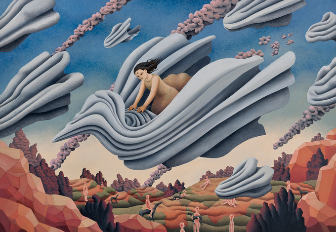 이마에 제3의 눈이 달린 소녀가 자유를 찾아 날아간다. 그는 과거를 두고 떠나는 데에 주저함이 없는데, 나 역시 잘 돌아보지 않는 성격이다. 제3의 눈은 내게도 있다. 남들이 신경 쓰지 않는 사소한 것에 몰입하게 되는 눈이다. 이 눈을 가져 예술을 하고 그림을 그릴 수 있다.