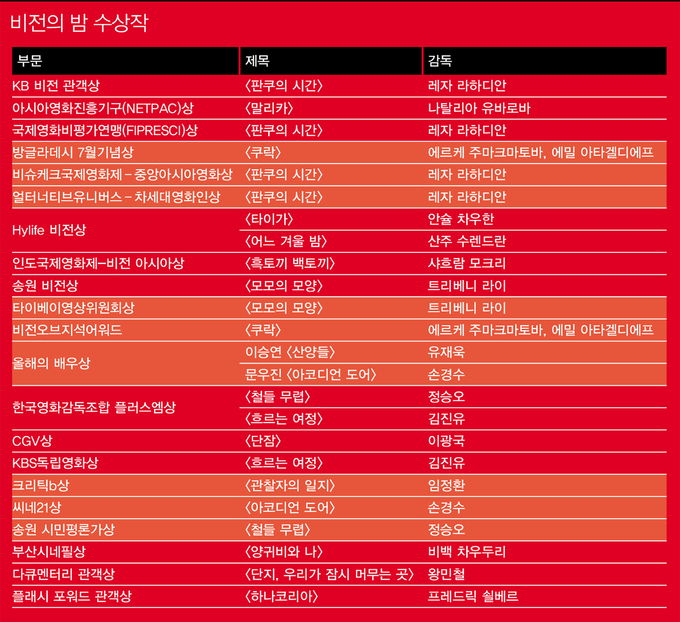 *이어지는 글에서 장률, 한창록, 이제한, 손경수, 이상일, 일디코 에네디 감독, 배우 설경구, 홍경, 니시지마 히데토시와의 인터뷰, 마이클 만, 세르게이 로즈니차, 자파르 파나히 마스터 클래스, 액터스 하우스가 계속됩니다.