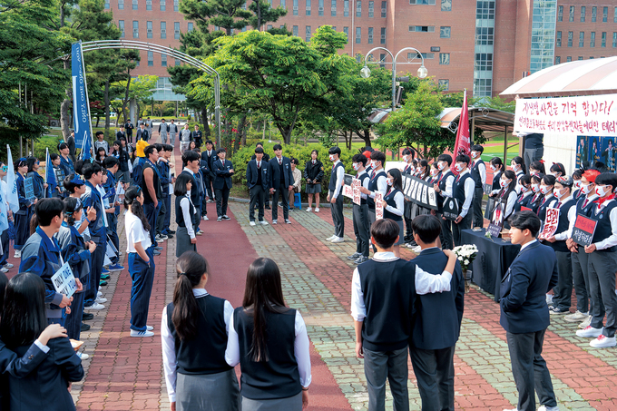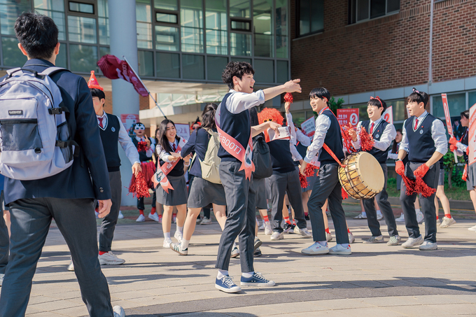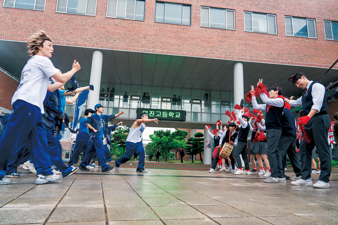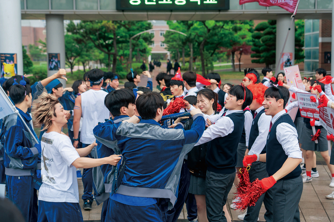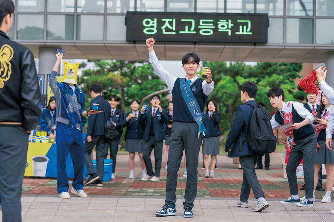 결국 몸싸움으로 번졌지만 웃고 있는 학생들의 얼굴만 봐도 현장 분위기는 화기애애했다. 배우들이 직접 만든 선거송을 촬영 전 함께 녹음하고 안무 연습을 하며 이미 충분히 가까워졌기 때문이다. 촬영이 후반으로 갈수록 연기인지 실제인지 모를 정도로 몰입하는 배우들도 있었다. “우리 팀이 꼭 이겨야 한다”라는 마음으로 모두가 점점 더 진지해졌다고. 해사고는 일반적인 학교들과는 다른 독특한 구조 덕분에 제작진의 상상력을 자극하는 장소이기도 했다. “넓은 야외뿐만 아니라, 건물과 건물을 잇는 구름다리, 곳곳에 숨겨진 분리수거장 등 흥미로운 공간이 정말 많았다. 그래서 학교라는 제한된 공간 안에서도 다양한 동선과 구도를 만들어낼 수 있도록, 공간적 특수성을 최대한 활용하고자 했다.”(한진원 감독) 옛 가락중학교에서도 촬영했는데 주로 교실과 복도 장면이었다.