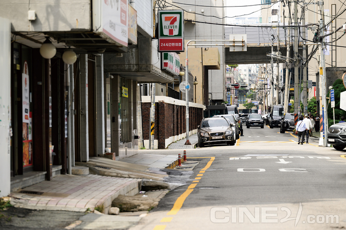 그외에도 <헌트>는 중앙동 곳곳에서 도쿄의 모습을 재현했다. 대체로 낮은 건물과 붉은 벽과 바닥, 무수한 전봇대 등은 1980년대 초반 도쿄의 거리를 표현하기에 최적의 배경지가 되었다. 중앙동 인근 거리는 좁고 복잡한 골목들로 이뤄져 있어 어디가 어디인지 알기가 쉽지 않다. 이때 기준이 되는 것이 영주고가교다. 영주고가교를 기준으로 북쪽은 부산역이 있는 동구이고, 남쪽은 중앙역이 가까운 중구와 중앙동 4가 거리다.