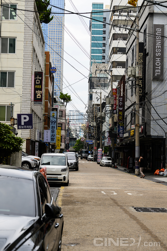 부산역 바로 뒤편, 영동빌딩이 있는 부산 동구 중앙대로 인근은 <헌트><승부>등이 촬영된 곳이다. 특히 <헌트>촬영 시 인근 거리를 모두 통제한 뒤 거리 일대를 도쿄로 꾸민 것으로 유명하다. 당시 촬영 지원에 나섰던 부산영상위원회 손일성 촬영지원팀 대리는 “코로나19 팬데믹으로 인해 해외 로케이션이 어려운 상황이었고, 결국 중앙동 거리를 세트로 꾸며 작업”했다고 회상했다. VFX 작업 없이 아날로그 작업을 통해 생생한 도쿄의 모습을 되살릴 수 있었던 셈이다.
