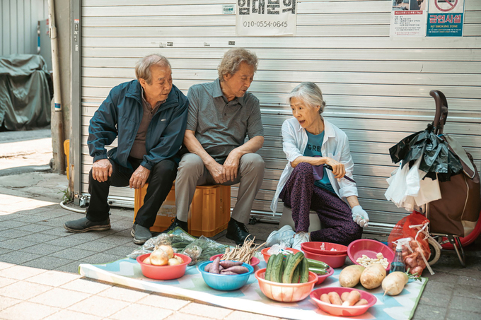 노년의 삶을 흔히 생의 마무리라 포장하지만, 영화 속 노인들에겐 버티기일 뿐이다. 마무리를 할 만큼 생의 과정이 정연하지 않았고 아름다운 끝을 설계할 만큼 삶을 꾸미며 살지 않았다. 폐지를 줍고 노상에서 채소를 팔며 생을 이어가는 세명의 노인은 법과 제도의 보호망 밖에 있다. 음식점을 돌아다니며 고기를 먹고 도망치는 이들의 행위는 사회의 경계 밖으로 밀려난 존재가 현실의 질서 안으로 잠시 침투하는 순간이라 말할 수 있다.