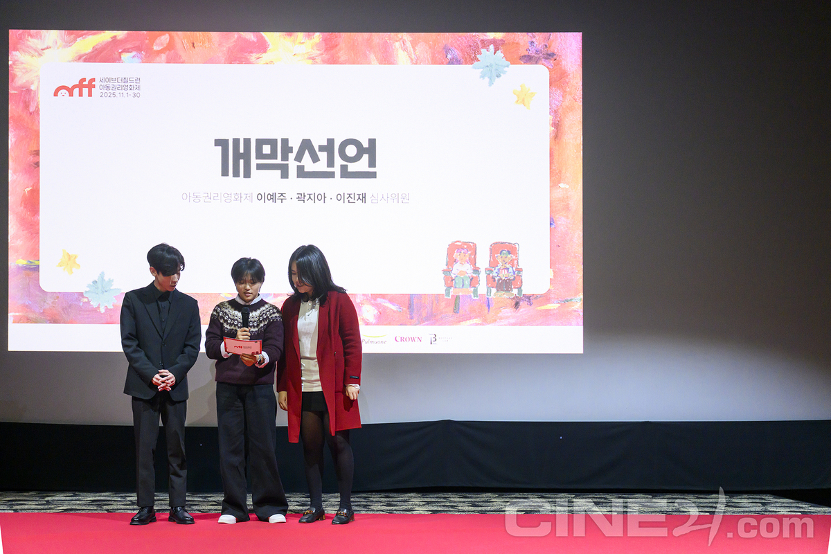 올해로 11회를 맞이한 세이브더칠드런 아동권리영화제(이하 아동권리영화제)가 지난 11월1일 개막을 알렸다. 11월30일까지 한달 동안 이어지는 아동권리영화제는 아동 체벌 근절을 향한 사회적 공감대를 이끌고 ‘아동 권리’라는 어엿한 영화적 장르를 구축하기 위해 국경을 넘은 다채로운 작품과 관객을 연결해왔다. 이날 개막식에는 오준 세이브더칠드런 이사장과 영화제 홍보대사 배우 문소리, 박경림 세이브더칠드런 홍보대사 등이 참석하고 가수 안예은이 축하의 노래를 불렀다. 영화제 사이트(www.sc.or.kr/crff)에서는 올해의 수상작 6편과 초청작 3편을 무료로 감상할 수 있다. 특히 올해는 불안정한 국제 정세에 주목해 ‘전쟁과 아동 특별전’을 마련했다. 유엔이 발표한 ‘아동과 무력분쟁에 관한 연례 보고서’에 따르면 전세계 분쟁지역에서 발생한 중대한 아동권리 침해 사례는 총 4만1370건으로 역대 최다에 이르렀다. 영화 한편이 모든 갈등을 무력화할 수는 없겠지만, 영화를 통해 어린이의 마음을 이해한 이들이 늘어날 때. 또 그 마음으로 행동하고 싶어지는 어른들이 많아질 때 세상은 반드시 변화한다. 어린이가 어린이답게 살아가는 세상을 펼치는 아동권리영화제의 개막식 풍경을 전한다.