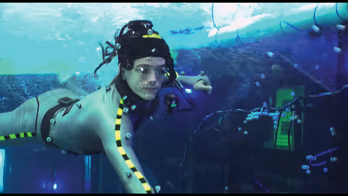 배우들이 퍼포먼스 캡처 촬영을 하려면 기본적으로 적외선카메라 촬영을 해야 하는데 그들이 수중에서 연기하는 모습을 촬영하려면 지상에서의 촬영과는 전혀 다른 변수가 생겨버린다. 그것이 고스란히 데이터에도 영향을 주게 된다. 그래서 제작진은 처음에 지상 촬영을 먼저 고려했다. 짐벌과 와이어 스턴트 기술을 동원해서 배우들을 전부 촬영장 허공에 매달아두고 촬영한 뒤에, 컴퓨터그래픽을 입히는 작업으로 촬영했다. 결과는 너무나 어색했다. 배우들의 동작이 전부 중력의 영향을 받았다. 결국 제작진은 배우들을 위한 수중 세트를 짓기로 결정했다.