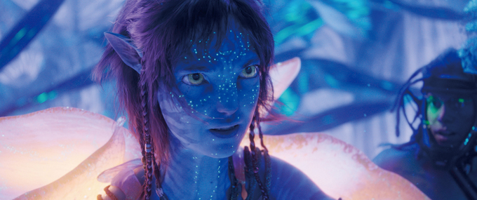 다큐멘터리적인 것은 이를테면 캐릭터 뒤에 배우의 영혼이 깃들어 있음을 느끼는 것이다. <아바타> 이후 성공적인 커리어를 쌓은 조이 살다나와 굳건한 샘 워딩턴을 비롯해 영화의 다른 ‘에이와’라 할 시고니 위버, 제임스 캐머런과 이전 작품을 함께한 케이트 윈슬럿 등은 각자의 얼굴 특징에서 따온 캐릭터를 통해 존재감을 드러낸다. 배우들이 극에서 작동하는 방식은 말하자면 관객의 상상을 통해서다. 그들이 실제보다 젊은 캐릭터를 연기한다는 점은 이들과 함께한 과거를 향한 묘한 향수를 불러온다.