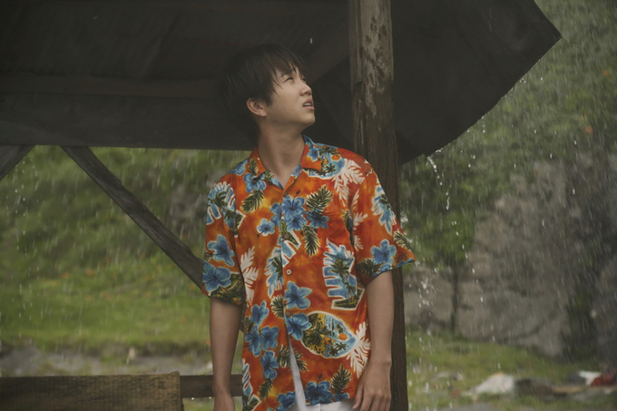 미야케 쇼는 그 허구의 프레임을 이내 시험에 부친다. 두 사람이 나무 정자에서 일어나 겉옷을 벗고 바다로 향하더니 파도가 거칠게 치는 바다 한가운데서 비를 흠뻑 맞으며 겁 없이 헤엄친다. 이 장면의 아슬아슬함이 생성하는 공포의 쾌감은 그 기분을 묘사하려는 언어를 초라하게 만든다. 땅에 발을 딛지 않는 두 사람과 마찬가지로 카메라 역시 예측할 수 없는 파도의 움직임 속에서 출렁인다. 어떤 장면에서보다 카메라의 시점이 강렬하게 느껴지지만, 그것의 정체는 너무도 모호하다. 카메라는 인물들과의 거리를 완벽히 주관하지도, 그들을 고고히 관찰하는 우위의 자리를 점하지도 못한다. 카메라는 자신의 시야 안에 두 인물을 고정하지 못하고 한꺼번에 포착했다가도 한 사람을 금세 놓쳐버리고 만다. 스탠더드 화면비에서 펼쳐진 매서운 역동성은 카메라의 무력함을 전시한다. 이 장면의 지배력은 오로지 바다의 것이다. 급변하는 날씨와 파고를 일으키는 물속에서 영화의 요소들은 적어도 움직임의 차원에서 평등하게 수동적이다. 다큐와 허구가 마찰하며 힘을 겨루는 이 장면은 정사각형에 근접한 틀로 바다의 수평면을 오려내 허구성을 강화하면서도 인물, 카메라, 프레임이 완벽히 조절할 수 없는 실재의 맹렬한 운동성으로 숏을 진행한다. 4:3 프레임은 이 지점에서 세계의 가장 불안정한 지평으로 지각변동한다. 미야케 쇼는 말하자면 카메라의 무능력으로 숏의 활력을 꾀함으로써 영화의 본질을 탐색한다. 이 지면에서 길게 언급할 내용은 아니지만, 이러한 태도와 방식은 그와 절친한 감독 하마구치 류스케가 <악은 존재하지 않는다>(2023)에서 프레임의 통제력과 서사에 귀속되지 않는 카메라의 역량을 노출함으로써 영화적 자의식을 표출한 경우와 사뭇 다른 것이기도 하다.