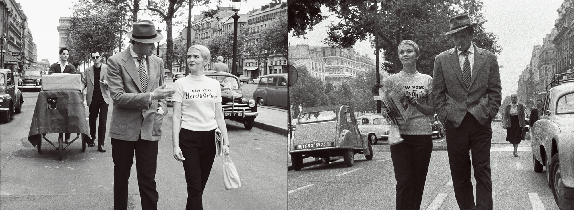 <누벨바그>(2025)는 1959년 장뤼크 고다르가 만든 <네 멋대로 해라>의 촬영기를 극화한 작품이다. 당대 파리의 풍경부터 <네 멋대로 해라>에 등장하는 장면의 구도, 가장 중요한 실존 인물들의 외양까지도 <네 멋대로 해라>의 판박이로 만들어졌다. 두 영화가 얼마나 닮았는지 사진으로 비교해보자.